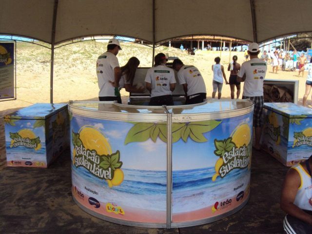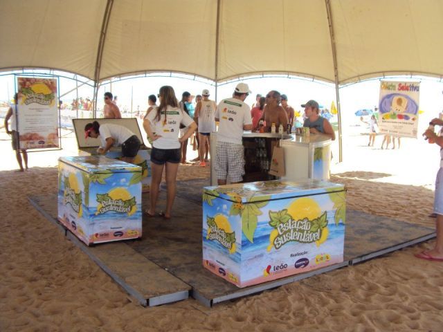 o Estação Sustentável voltou às praias para incentivar a coleta de resíduos nas areias, que, devidamente ensacados, valiam brindes e produtos da Leão.
