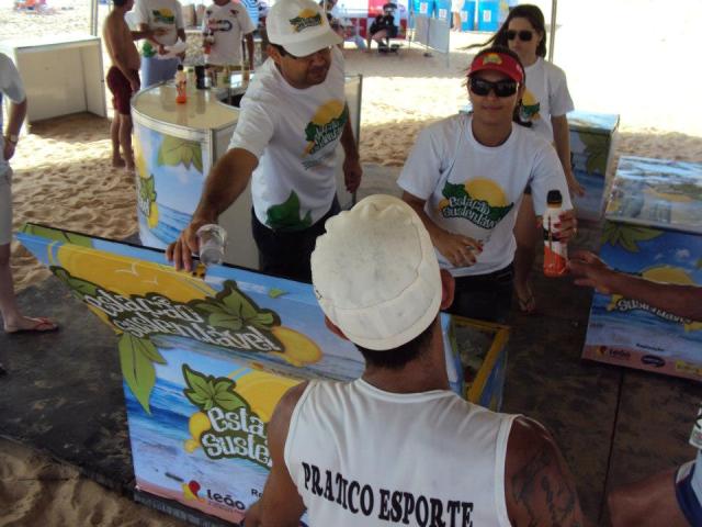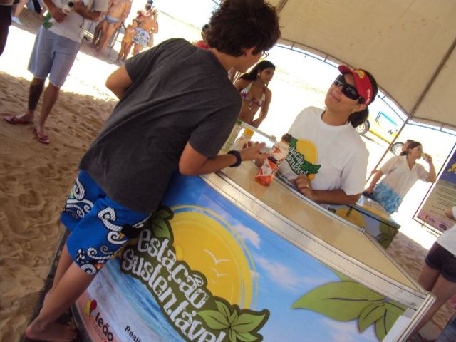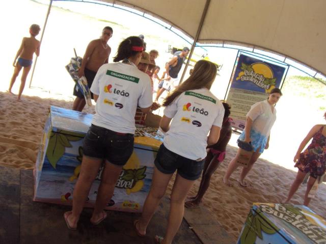 num mutirão de limpeza das praias, os participantes receberam sacos produzidos a partir de embalagens longa vida para recolher resíduos e trocá-los por brindes e produtos da Leão. Também teve sessão de massoterapia oferecida pela Mais Ativa, ao lado de oficinas de produção de papel reciclado com o apoio da Tetra Pak. O Projeto Tamar e a ONG Ecocidadania mais uma vez foram parceiros dos eventos.