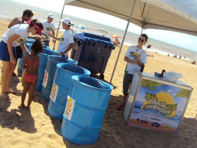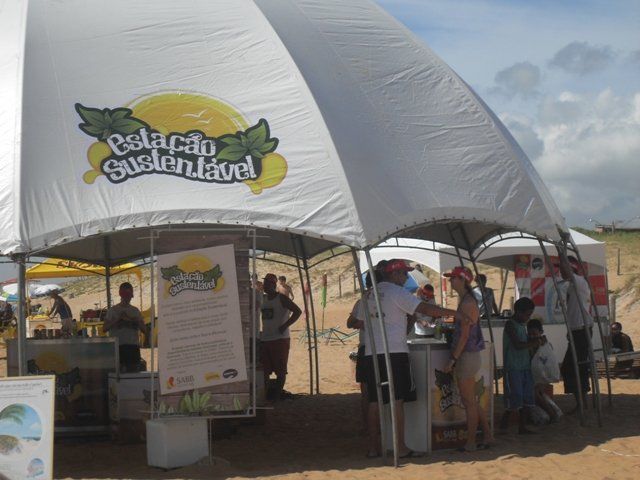 O que foi feito: a primeira temporada do Estação Sustentável ofereceu brindes em troca de sacolas de resíduos coletados nas praias pelos usuários. O Projeto Tamar, parceiro da iniciativa, auxiliou com atividades de educação ambiental para o público participante. A ONG Ecocidadania distribuiu mudas de plantas nativas e o SAAE ofereceu copos de água.